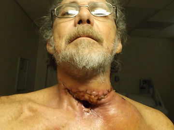 Left--Pectoral flap healed(blue/white thing in stoma is my speech valve)